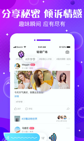 轻语是一款主打语音交友的社交软件,让你用声音遇见有趣的灵魂。你可以找到志同道合的朋友、游戏开黑的队友,甚至邂逅一段浪漫的缘分。不同于传统社交软件看脸的模式,轻语更注重声音的魅力,让你在轻松愉快的氛围中拓展社交圈。无论是想找人聊天、分享生活,还是寻找陪伴,轻语都能满足你的需求。
