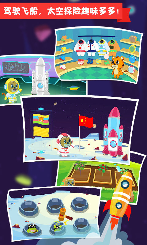最令人眼前一亮的当属八大主题区域!从热闹繁华的集市到神秘莫测的太空站,每一处都提供独特的玩法体验。宝贝们可以驾驶宇宙飞船进行星际遨游,也能跟随菜谱在厨房烹制美味佳肴,甚至还能管理整个超市的日常运营。所有角色都像动画片中的好伙伴,能说会跳,陪伴孩子们完成各种任务。游戏内还设有丰富的成就徽章系统,解锁新场景时会有焰火绚丽放映的庆祝效果,这些小惊喜定能带给宝贝无限欢乐。
