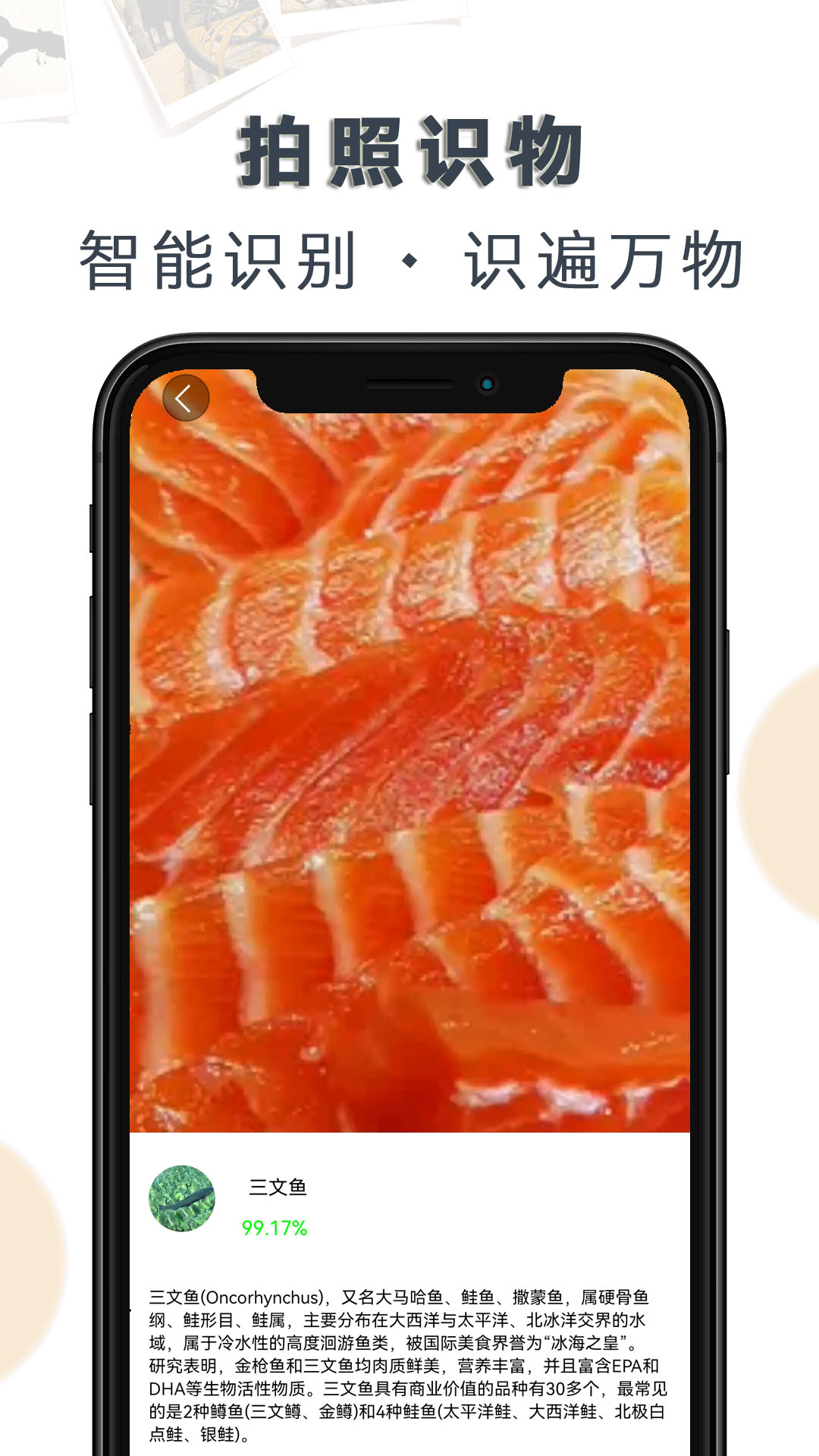 2.应用内置庞大的知识库,涵盖了植物、动物、食品、工业产品等多种类别的信息。用户可以获取详细的物品介绍、使用技巧以及相关趣闻,让知识的获取变得更加轻松。
