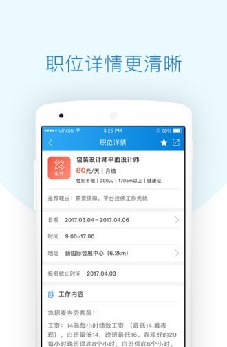 2. 安全可靠的交易保障:平台对招聘信息进行严格审核,确保所发布内容真实有效,保护用户权益,让求职过程更加安心。