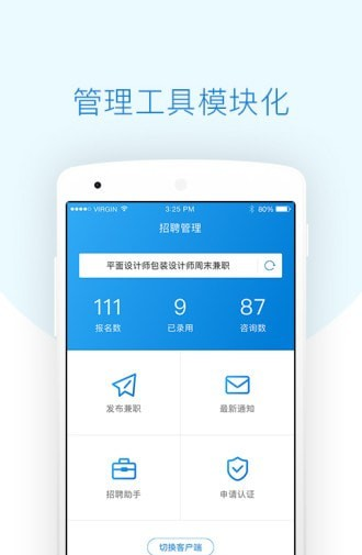 2. 这款平台涵盖了多元化的兼职岗位,如服务员、促销助理、线上客服、翻译、家教、设计师等,基本满足不同用户的各种需求。企业也可以通过平台发布招聘信息,拓宽招聘渠道,迅速找到符合条件的人才,提升招聘效率。