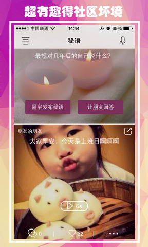 3、秘语app最新版本使你得到一天幸福快乐的心态,从聊天社交慢慢,寻找你的朋友。
