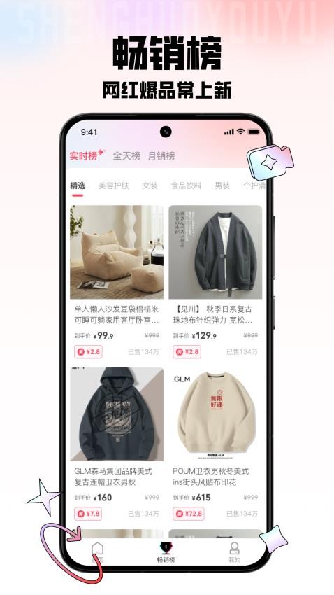 平台以“即刻”系列功能设计为核心,形成差异化竞争优势:用户可以通过即刻聚合多平台比价,进行精准选品;即刻零售实现订单到售后全过程的高效管理;即刻互动支持素人主播快速搭建个性化直播间,助力内容创作;即刻成长提供系统化的培训课程,提升主播技能;而即刻省购则整合全网优惠资源,帮助用户轻松省钱。同时,平台构建的文化数据资产体系允许用户通过购物、分享等行为积累贡献金,兑换具有收藏价值的数字权益。此外,平台丰富的促销活动,如9.9元专区、限时秒杀及新人0元购,持续强化其高性价比的市场竞争力。