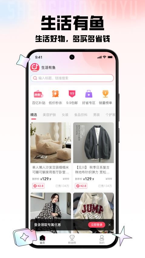 “生活有鱼”是一款集多项数字生活服务于一体的综合平台,融合了电商购物、直播导购、社交分享以及收益获取等多样功能。作为一款聚合型应用,它整合了淘宝、京东、拼多多等主流电商平台的丰富资源,通过隐藏优惠券和返佣奖励机制,为用户打造出一种既能省钱又能赚钱的创新型消费模式。该平台由拥有数亿元B轮融资背景的技术团队精心研发,依托强大的供应链体系与先进的数据加密技术,确保每一次交易的安全性及商品的高品质。其核心目标在于为用户提供兼具实用性与经济性的数字化生活方案,广泛覆盖衣食住行等日常生活的各个场景。