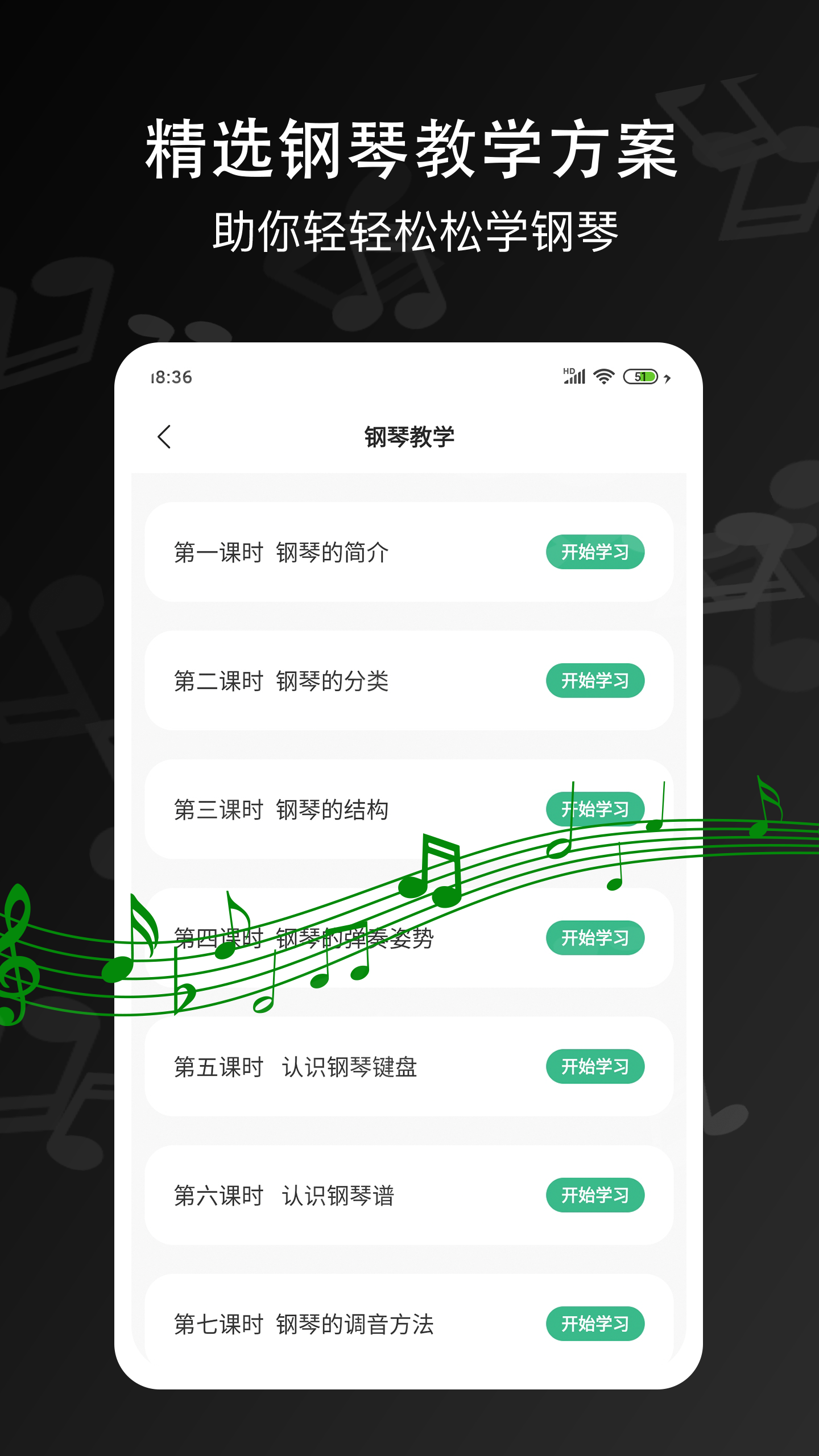 钢琴是一款基于移动端的平台,具备高度仿真的智能钢琴模拟器,专为热爱音乐和学习者量身打造。它采用先进的音频采样技术,完美复原三角钢琴的纯正音色,支持全键88键布局,覆盖从基础练习到专业演奏的多样化场景。软件集教学、娱乐及创作于一体,不仅满足零基础用户的自主学习,也适合作为专业钢琴演奏者的便携练习伴侣。内置庞大的曲库与智能陪练系统,让用户可以随时随地沉浸在钢琴艺术的魅力中。