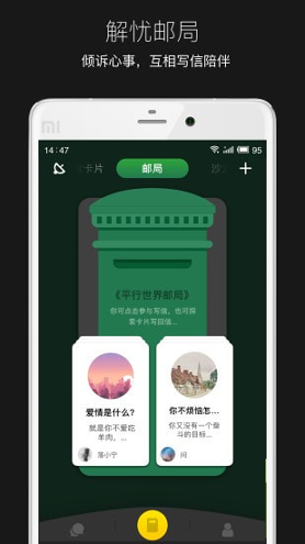 由四张核心卡片构建了独特的体验:灵感卡仿佛个人的私人博客,记录生活点滴;漂流卡让你倾诉秘密心事;护照卡帮助你认识自我、定位人生;知心信箱则由智慧蛋来解答你的疑问。同城标记功能让你发现身边的同好,而私密卡包犹如上锁的日记本,无需担心被熟人窥见。对于文艺青年而言,这个平台早期积累了大量诗人用户,营造浓厚的创作氛围,写诗、手账都能找到共鸣与灵感。