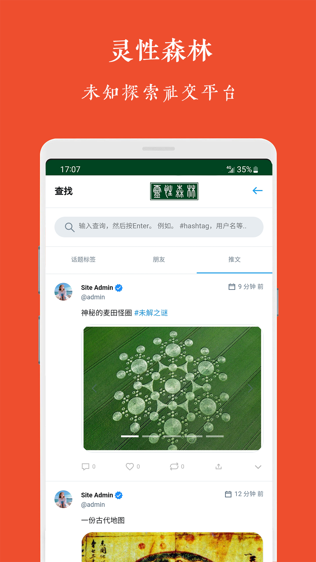 灵性森林是一款专注于未知领域探寻与心灵成长的社交平台,打造了一个独特的空间供用户分享与发现世界深奥的秘密。它融合了社交互动、探索体验及精神成长多重功能,吸引了众多对古文明、神秘现象以及心理拓展充满兴趣的用户群体。在这里,你可以结识志同道合的伙伴,参加丰富多彩的讨论和活动,共同进入未知的奇幻世界。