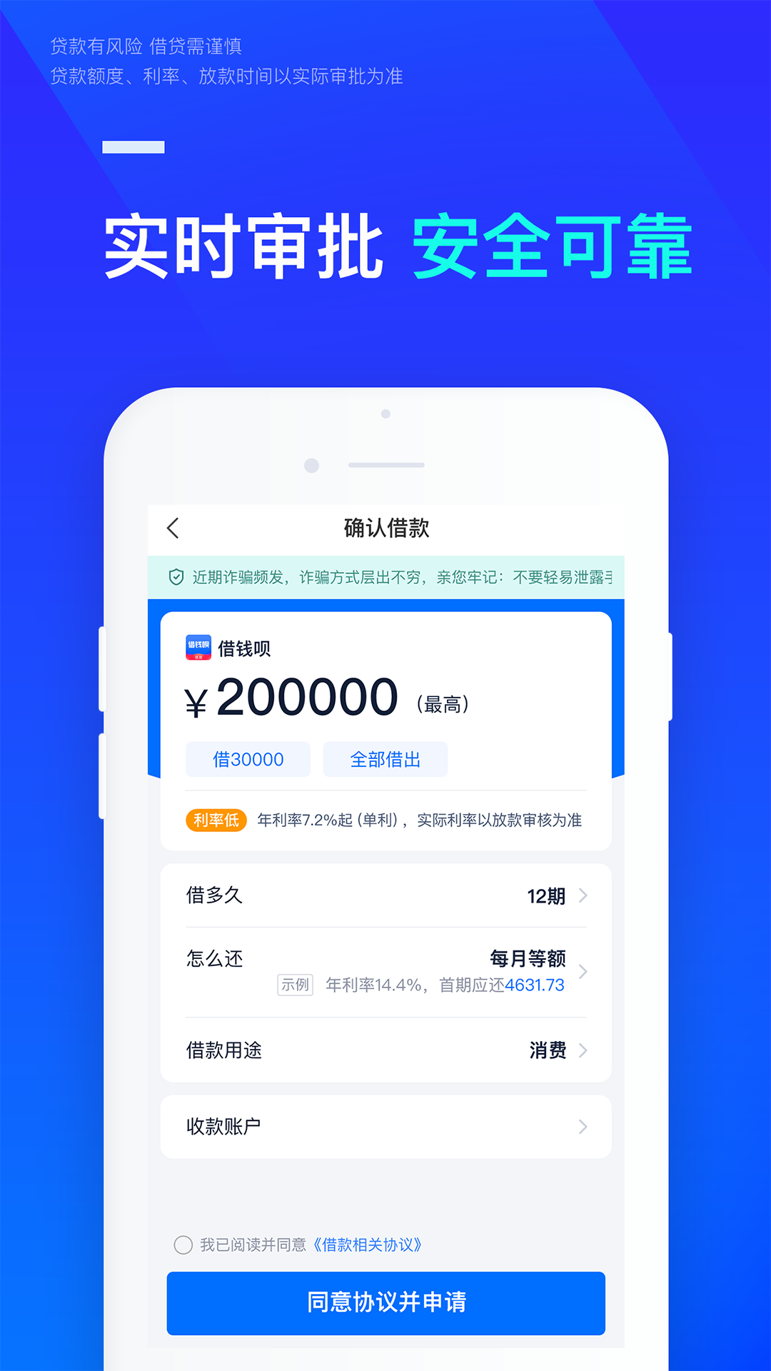 2. 申请流程高效:用户只需提供必要的个人信息以及借款额度,便可快速提交申请,省去繁复的纸质材料准备步骤。