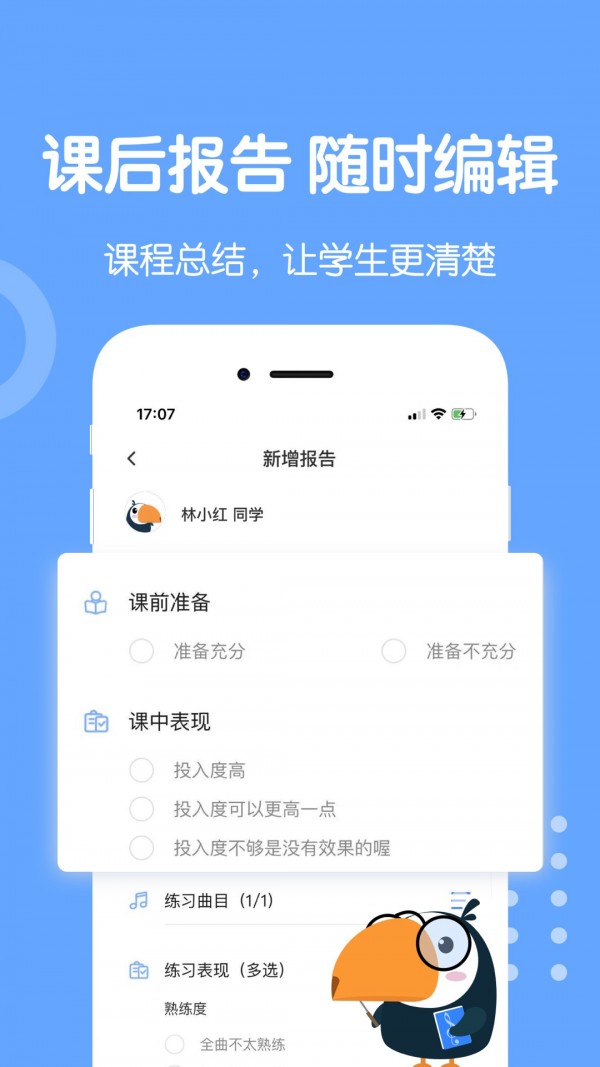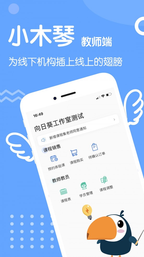 专为各级音乐教师打造的“小木琴”教师端应用,无论是校内的音乐教师,还是私人音乐工作坊的任课老师,都能从中获益匪浅。注册账号后,用户即可便捷地进行课程安排、学生进展跟踪以及作业布置等多项教学相关操作。界面设计简洁清晰,操作流程直观易学,即使是不太熟悉科技工具的教师也能迅速掌握使用技巧,提升教学效率。