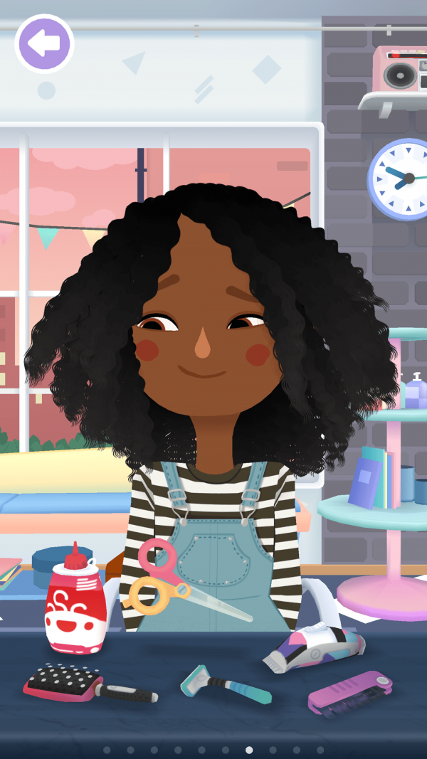游戏内提供11种梦幻般的发色调配,就像调色盘一样丰富多彩;9种逼真的理发工具,其中连电动推子的嗡鸣声都模拟得惟妙惟肖。每位小顾客都会与玩家互动做鬼脸,剪得顺利会哈哈大笑,若剪得不满意则会皱眉表达情绪。新增的非洲小脏辫和炫彩挑染功能,让发型更具有个性,甚至连胡子也能修饰成星星或爱心造型!没有时间限制与分数压力,宝宝们可以慢慢琢磨最适合的发型,就像玩过家家一样轻松愉快。