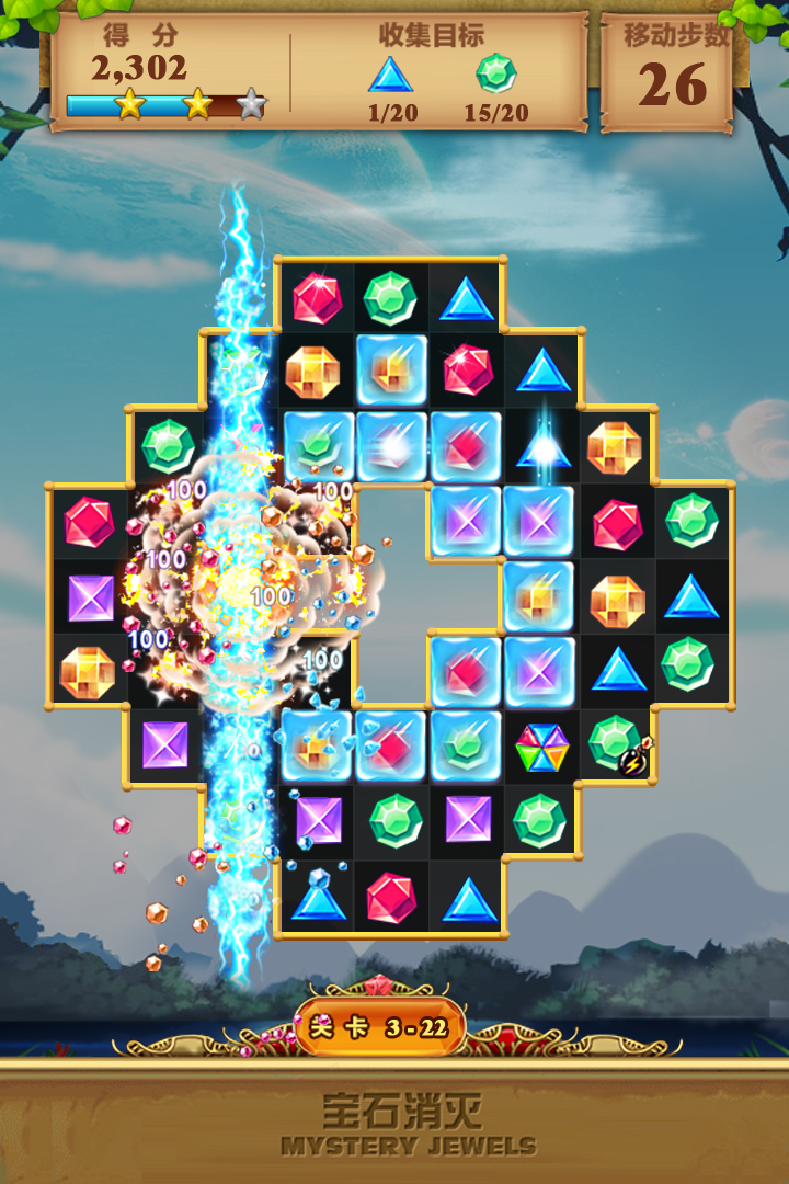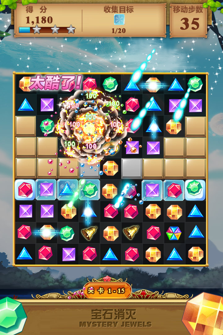 诸位宝贝进入游戏后会发现,这里简直就是宝石迷的梦幻乐园!整个界面绚丽多彩,满屏都是闪耀的糖果色宝石,只需指尖轻滑便可交换相邻宝石的位置。当横排、竖列甚至斜线上形成三个及以上相同颜色的宝石时,它们会发出“砰”的一声消失,还会为你累计积分。随着关卡逐步推进,难度会像攀爬山峰一般逐渐升高,但不必担心,游戏内还准备了各种神奇道具助你一臂之力——比如可以横向清除的彩虹棒、可以炸裂大范围的宝石炸弹,以及能够变色的魔法宝石!更令人兴奋的是,连续的消除还能引发超爽的Power模式,连击奖励让分数蹭蹭上涨,体验极致畅快!