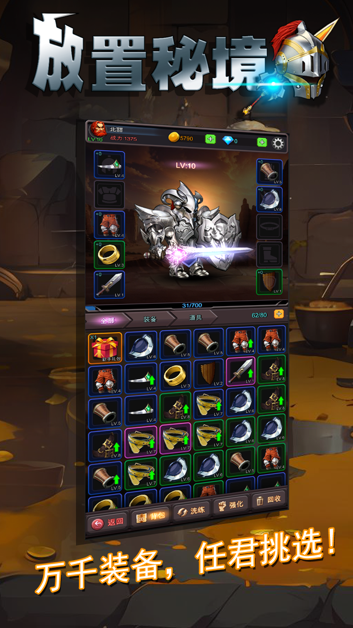 放置秘境是一款将放置挂机元素与策略探险完美融合的休闲手机游戏,让玩家即使在日常繁忙之中,也能轻松体验成长和收获的乐趣。游戏操作非常简便,无需繁琐操作,只需进行简单的设定即可实现自动战斗、资源采集等功能,非常适合偏好轻松玩法同时又追求策略深度的玩家。背景构建在一个充满魔幻色彩的虚拟世界,随机的元素设定和丰富多彩的剧情内容为每次冒险增添了新鲜感,带来持续的探索乐趣。