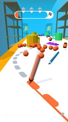 作为一款体量不大的游戏,它在创意和执行力方面表现出色。玩法虽不复杂,但每个细节都打磨细致——比如彩笔撞墙时会委屈地瘪一下,过关后还会扭屁股庆祝。难度曲线合理,前10关作为教学关卡逐步引导玩家,之后逐渐加入移动平台、隐形路线等新元素,甚至需要提前预判两三步的操作。遗憾之处可能是广告略多,但每次观看广告可以获得半小时免广告的体验,整体还算公平。它看似幼稚,但玩起来却让人上瘾,是一款特别适合放松同时不费脑的宝藏佳作,尤其在需要减压的时候绝对值得一试。