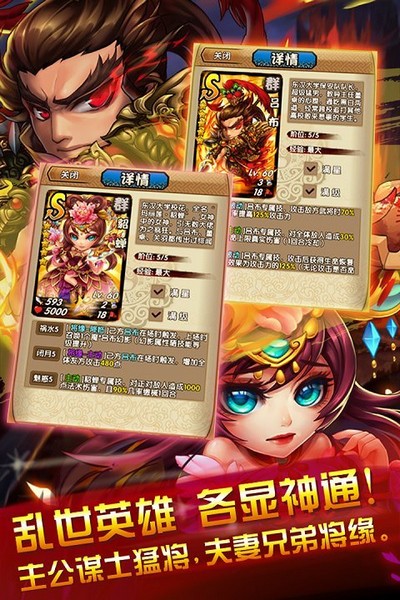 对于追求精致画面的人来说,此作的美术风格必定吸引:角色立绘既保留了三国人物的辨识度,又融入了Q版的萌趣元素。技能特效也极具表现力,例如青龙偃月刀劈砍时的刀光剑影令人震撼。收集爱好者可以在这里找到乐趣,近百名武将卡牌拥有各自的历史背景与故事,玩家可通过副本、酒馆宴请等方式逐步集齐完整卡牌图鉴。在社交方面,游戏配备完善的军团系统,成员们可以联合对抗邪神BOSS,贡献值还能兑换各种稀有道具。最贴心的是,没有资源掠夺设定,平民玩家凭借策略也能轻松击败氪金大佬,实现公平竞争。