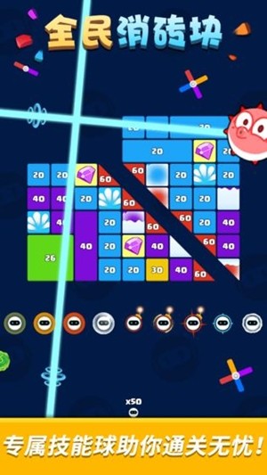 1. 全民消砖块是一款兼具趣味性、挑战性和社交性的精品手游。凭借操作简单、关卡丰富,既能让玩家在轻松中挑战自我,也能不断突破自我极限,提升实力。不论是休闲时光还是朋友聚会,它都能带来无尽欢笑与愉悦体验。