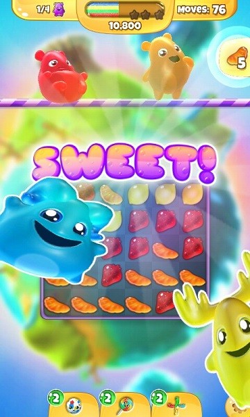 4. 提供多种特色软糖和魔法道具,玩家能利用这些道具更快捷地完成关卡,享受极致的消除快感。
